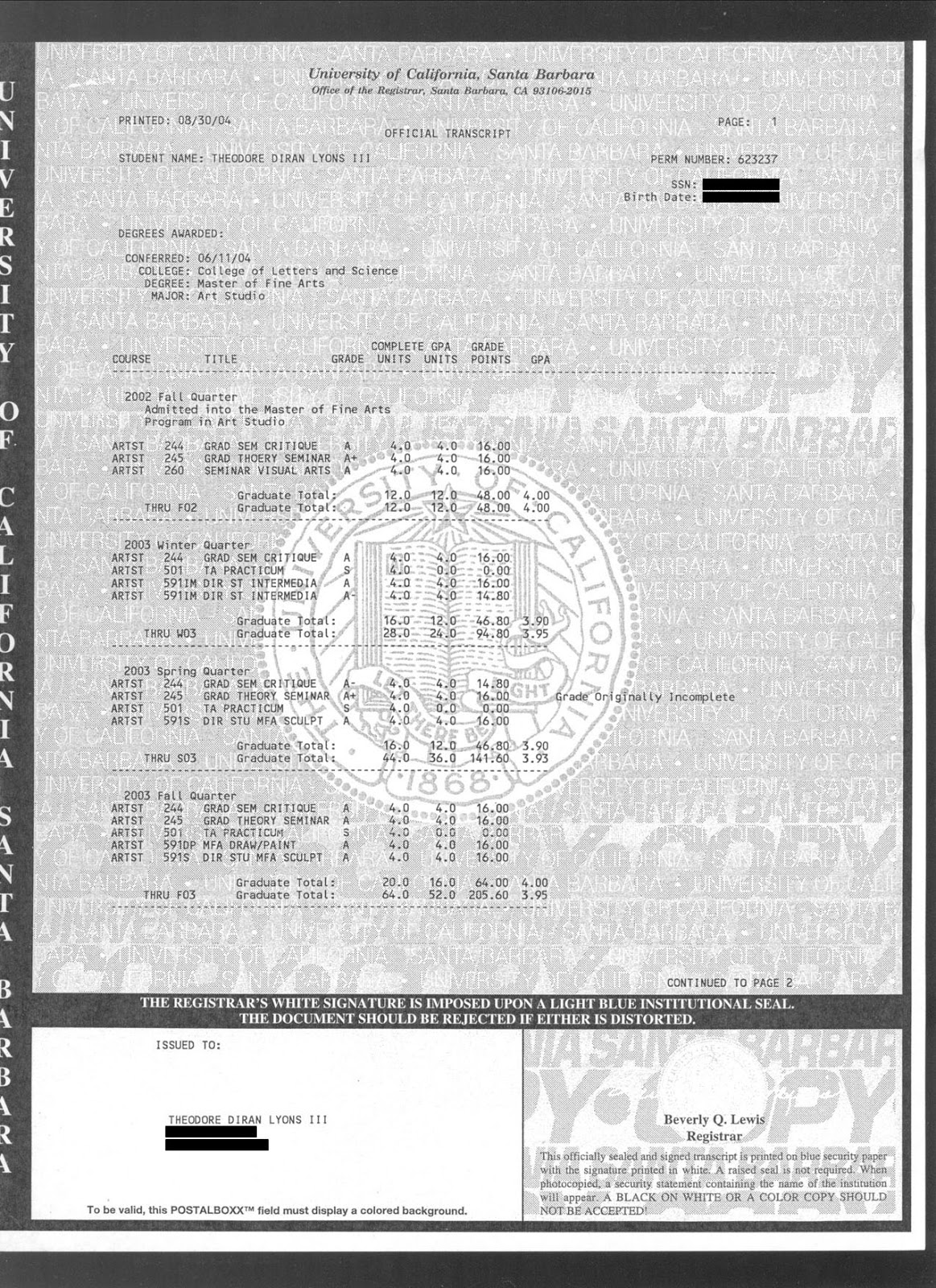2004 MFA, Painting and New Genres, University of California, Santa Barbara (Regents Fellow). 1, 2.